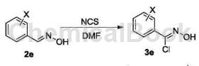 The specific steps are as follows: Add 15.55g (0.10mol) raw material 2e (o-chlorobenzaldehyde oxime) to a 250mL single-neck flask, add 150mLDMF to it, stir to dissolve, and then add 16.02g ( 0.12 mol) N-chlorosuccinimide, dried and protected, reacted at 50-60°C for 3 hours, followed the reaction progress by TLC, and after the raw materials reacted completely, lower the reaction solution to room temperature and seal it for storage.