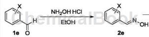 The specific steps are as follows: Weigh 28.10g (0.20mol) of raw material 1e (o-chlorobenzaldehyde) into a 500mL single-neck flask, add 200mL of absolute ethanol to it, and then add 20.85g (0.30mol) of hydroxylamine hydrochloride Dissolve in 70 mL of water, neutralize with sodium carbonate and slowly add it dropwise into the reaction bottle. After the dropwise addition is completed, reflux and stir for 2 hours. TLC will follow the reaction progress. After the raw materials have completely reacted, pour the reaction solution into water. A large amount of white solid was precipitated. After filtering, washing with water and drying, 29.73g of product 2e was obtained with a yield of 95.6%. The m.p. of the product o-chlorobenzaldehyde oxime is 75~77℃, and the nuclear magnetic data is: 1HNMR (600MHz, CDCl3/TMS) δ: 7.35~7.43 (m, 2H , Ar-H), 7.50 (d, 1H, J=8.0Hz, Ar-H), 7.81 (d, 1H, J=8.0Hz, Ar-H), 8.36 (s, 1H, CH=N), 11.63 (s, 1H, OH).