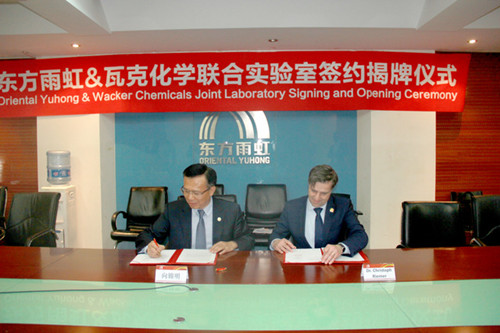 April 18, The joint laboratory project between Wacker Chemie AG and Beijing Oriental Yuhong Waterproof Technology Co., Ltd. was officially launched in Beijing. This project aims to further strengthen upstream and downstream cooperation in the field of waterproof coatings. Through the “Oriental Yuhong-Wacker Chemical Joint Laboratory” set up in their respective workplaces, the two companies will work together on the basis of vinyl acetate/ethylene ( VAE) emulsion waterproof coating basic research and application research, to meet the market demand for high-performance and green environmental protection building materials.