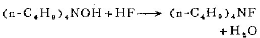 2. Slowly add hydrofluoric acid aqueous solution (10% W/V) to 100 ml of tetra-n-butylammonium hydroxide aqueous solution until the pH begins to drop. Use dilute hydrofluoric acid (3%) Titrate to pH 7 and dilute the light brown solution to 300 ml (about 0.5M) with water. Cool in ice to precipitate fine crystals of caged (n-C4H9)4NF.32.8. Filter, wash with ice water, and finally dry in the air. . Obtain 72 grams. Concentrate the mother liquor, dilute to about 0.5M and cool to 0°C. You can also obtain a second portion of 32 grams) clathrate compound. The clathrate can be stored in polyolefin containers at 0°C for several weeks.