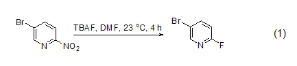 Fluorine substitution reaction TBAF can be used for most fluorine substitution reactions. For example: 2-fluoro-4-bromo-pyridine is prepared from 2-nitro-4-bromo-pyridine (Formula 1)[2]. Mild reaction conditions and high reaction yield are the main reasons for using TBAF as the fluorinated reagent.