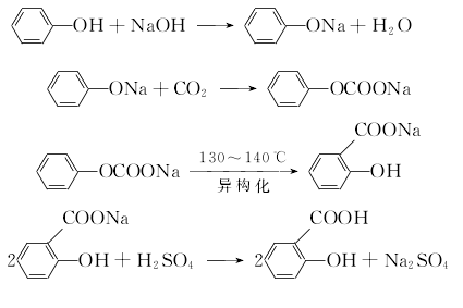 Amount activated carbon, boil, filter while hot, cool the filtrate and dissolve in distilled water again, filter and spin dry several times to obtain pure salicylic acid. The crude salicylic acid obtained can also be refined by sublimation under reduced pressure. The process reaction formula is: