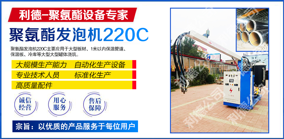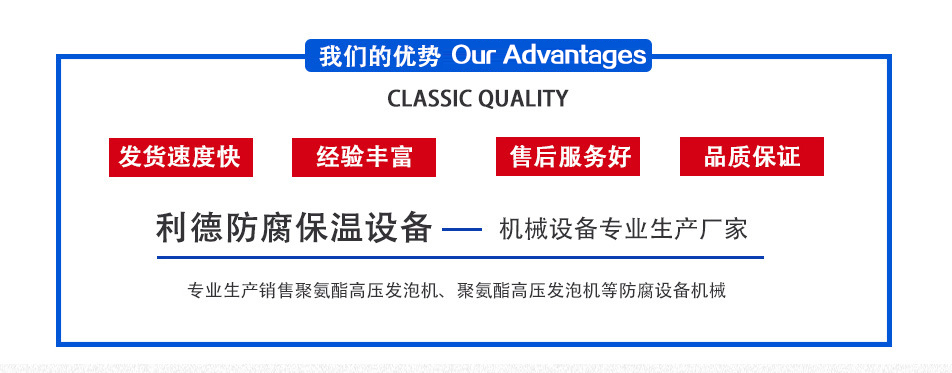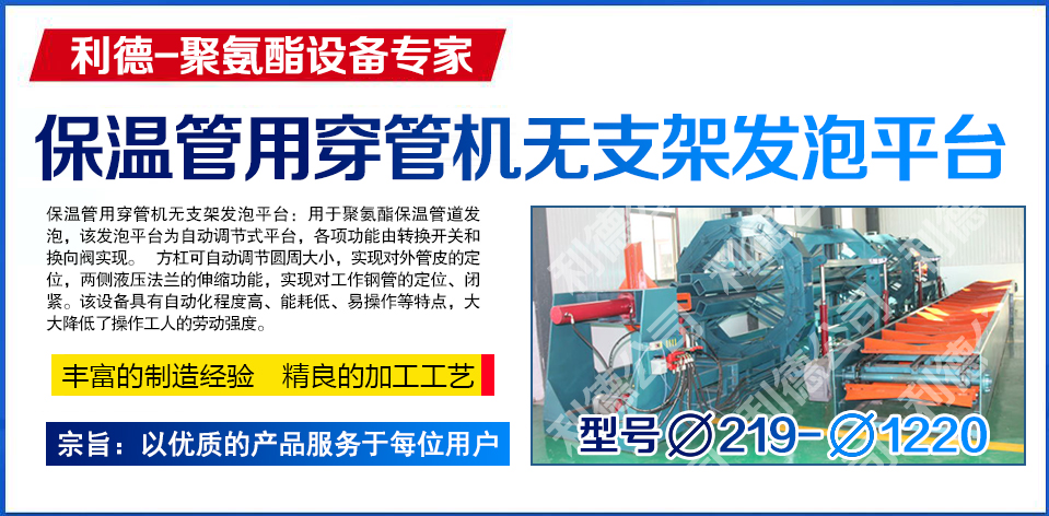 The company mainly produces polyurethane equipment, high pressure and low pressure foaming machine series, polyurethane spraying machine, one-step insulation pipe production line, hydraulic foaming platform without support, three PE anti-corrosion production line, shot blasting derusting machine, glass filament winding machine, double chain A series of high-tech and practical polyurethane equipment such as pipe threading machine, jacket pipe production line, iron plate roll forming machine, insulation board packaging machine, blister machine, engraving machine, etc.
