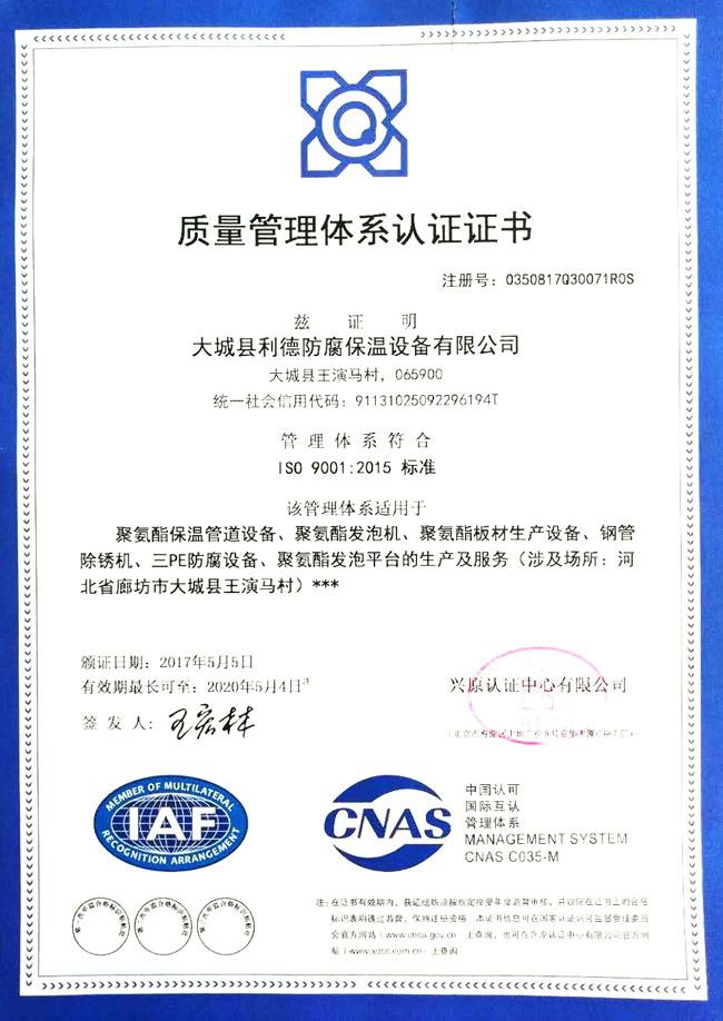 Dacheng Lide Anticorrosion and Thermal Insulation Equipment Co., Ltd. is a professional manufacturer located in Dacheng County, Hebei Province (the hometown of thermal insulation in China). The company has strong technical force and advanced production equipment, standardized production. The company has professional design and manufacturing personnel and a perfect quality assurance system, which determines the superior quality of the company’s products. The products are sold to Beijing, Shanghai, Tianjin, Hebei, Inner Mongolia, and other provinces and cities, and have been selected in many national key projects and sold to Southeast Asian countries. Lide anti-corrosion and thermal insulation equipment Co., Ltd. has a development history of more than 20 years since its establishment. It is located in Dacheng County, Hebei Province, where the thermal insulation industry is relatively developed. Convenient transportation conditions, abundant production raw materials, and complete supporting facilities have enabled the company to achieve rapid development.