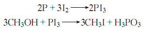 3. Add red phosphorus and methanol to tank A, add iodine tablets to tank A, heat tank A with steam, so that the methanol boils and evaporates into tank A, contacts the iodine tablets and flows back to tank A. , repeat until the solution is nearly colorless. Then it is evaporated to obtain crude methyl iodide. The heating speed should be controlled during the process to prevent the reaction from being too intense. The reaction formula is: