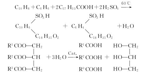 (1) Fractional distillation method Add 6t of cottonseed oil hardened oil to the hydrolysis pot , hydrolyzing agent stearicresolsulfonic acid and stearic naphthalenesulfonic acid 120kg. After steam is introduced until the oil layer is transparent, add 4200kg of water. Continue to heat to boiling, react under normal pressure for 7.5 hours, clarify for 0.5 hours, and separate the lower layer of glycerol water. After that, add 120kg of hydrolyzing agent, add steam and heat until the oil layer is transparent, add 3600kg of water, and react for about 10 hours. The end point of hydrolysis is when the mixed acid value reaches above 190mgKOH/g. After that, it was clarified for 0.5h, and after separating the glycerol water, 7g of salt and 3600kg of water were added for washing. Then use 14kg of salt and 4200kg of water for secondary water washing. After the first step of washing, it was clarified for 0.5h, and after the second step of washing, it was clarified for 2h. After the lower layer of acidic water is separated, take the upper layer of mixed fatty acids and set aside.