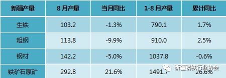 In August, Xinjiang’s raw iron ore output was 2.928 million tons, a year-on-year decrease of 21.6%; the cumulative iron ore raw output from January to August was 14.917 million tons, a year-on-year decrease of 26.6%.