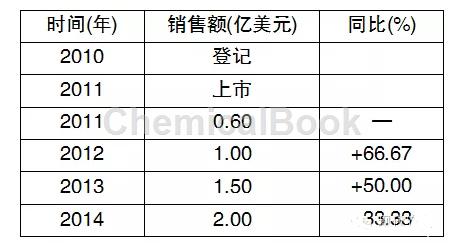 From 2011 to 2014, the compound annual growth rate of bifenzofen was 49.38%. The expected annual peak sales of bifenzofen are 300 million euros, and it will become another blockbuster product of the company.