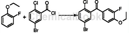 The specific steps are as follows: Dissolve 5-bromo-2-chloro-benzoyl chloride (12.4g, 48.8mmol) in 100mL dichloromethane, add 1-ethoxy-2-fluoro-benzene (6.84g, 48.8mmol), cool to 0°C, add aluminum trichloride (5.86g, 44mmol) in batches, and react for 16 hours. Add 20 mL of 2M hydrochloric acid solution dropwise to the reaction solution under an ice bath, separate the layers, extract the aqueous phase with 30 mL of methylene chloride, combine the organic phases, dry over anhydrous magnesium sulfate, filter, and concentrate the filtrate under reduced pressure to obtain the title product (5-bromo -2-Chloro-phenyl)-(4-ethoxy-3-fluoro-phenyl)methanone (12.8 g, yellow solid). MSm/z(ESI): 358.9[M+1].