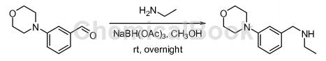Add 3-morpholinobenzaldehyde (4.58g, 23.9mmol, 1.00 equivalents), ethylamine (5.39g, 120mmol, 5.00 equivalents), and methanol (100mL) into a 250mL round-bottomed flask. The resulting solution was stirred at room temperature for 2 hours. Add triacetoxy�Sodium hydride (15.2g, 72.0mmol, 3.00 equivalents). The resulting solution was stirred at room temperature overnight and quenched with water (50 mL). The resulting solution was extracted with dichloromethane (3 × 100 mL), the organic layers were combined, washed with brine (3 × 100 mL), dried over anhydrous sodium sulfate, filtered, and concentrated under reduced pressure. The residue was chromatographed on a silica gel column using ethyl acetate/petroleum ether (5/1) to obtain N-(3-morpholinobenzyl)ethylamine (4.00g, 75% yield) as a yellow solid .