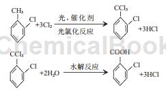 The chlorination method uses o-chlorotoluene as raw material. First, o-chlorotrichlorotoluene is obtained by passing Cl2 in the presence of PCl3 catalyst, and then hydrolyzes it into o-chlorobenzoic acid. Compared with the diazotization method and the oxidation method, the catalytic photochlorination method has many advantages such as short process flow, easy control of reaction conditions, high yield, low cost, and low environmental pollution.