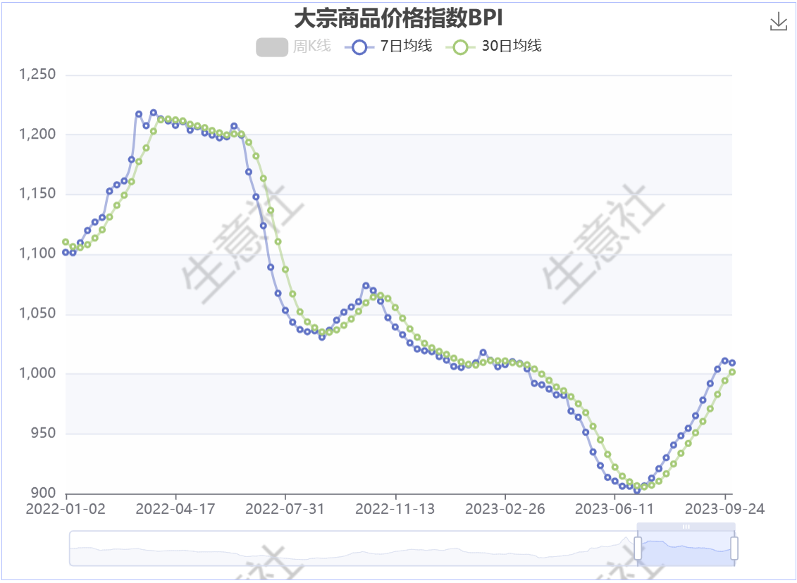 Business News published an article on September 13, “Manufacturing PPI turned positive for the first time this year on a month-on-month basis. Business News BCI predicts the economy may pick up.” According to the monitoring of Business News, Business News’ BCI increased significantly for two consecutive months in July and August. The red color reflects the expansion of the manufacturing economy. According to the SunSirs Commodity Price Index BPI, since July 2, 2023, the 7-day moving average has crossed the 30-day moving average and started an upward trend, and the current two moving averages continue to rise in the same direction, indicating that the BPI has entered an upward channel, which also reflects the macro The economy will go up. This article predicts for the first time that the macroeconomy will stabilize and recover in 2023.