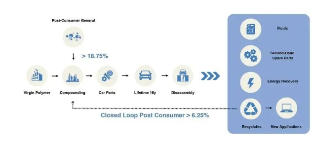 One of the key requirements is that new car production must use at least 25% post-consumer recycled PCR materials, of which 6.25% must come from closed-loop raw materials.