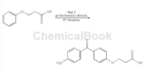 Thionyl chloride was removed under reduced pressure. Dichloroethane (1 L) was added and evaporated to give 4-nitrobenzoyl chloride as a solid. The solid was dissolved in dichloroethane (1 L). Dichloroethane (10 L) was introduced into a 20 L glass flask and cooled to 0 °C. Add aluminum chloride at 0-5°C. Then, the 4-nitrobenzoyl chloride prepared above dissolved in dichloroethane was added dropwise at 0°C. Phenoxypropionic acid was added in portions to the 3-phenoxypropionic acid reaction composition at 0.5°C and stirred at 25°C overnight. Check TLC and quench the reaction composition in a mixture of hexanes (8 L) and ice-water (15 L). The composition was stirred and the solids were filtered off. The product was washed with hexane and dried. Yield: 400 g (70% of theory), Purity: 92.8% by HPLC.