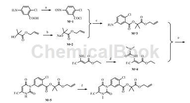 Butafenacil (English common name butafenacil, trade name Inspire) is a non-selective uracil herbicide developed by Syngenta. It was launched in 2001 and is mainly used to control gramineous weeds, broadleaf weeds and sedges in vineyards, cotton and non-cultivated land. The pre-emergence and post-emergence weeding dosages are both 75-150 g/hm2. The synthesis reaction formula is as follows: