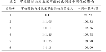 The effect of the ratio of sodium methylmercaptide and p-chlorobenzaldehyde on the intermediate: