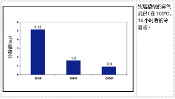 The volatility is more than 50% lower than DOP. During processing, the loss of plasticizer can be reduced and the loss of volatile organic compounds can be reduced. Most importantly, lower volatility reduces foggas deposits on car windshields in the final product.
