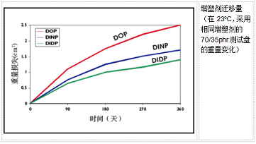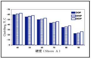 When DIDP is used to replace DOP, low temperature flexibility and impact properties can be improved, and the amount of DOA can be reduced accordingly. Under the same hardness conditions, the Bell Brittleness test and Clash Berg test results of DIDP are better than those of DOP.