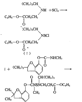 N-Isopropyl-β-alanine ethyl ester reacts with sulfur dichloride, and the product reacts with carbofuran to prepare propylthiocarbofuran. The reaction formula is as follows: