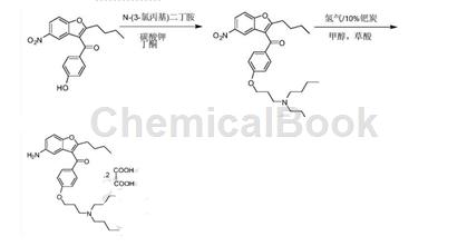 (5-Amino-2-butyl-3-benzofuranyl)[4-[3-(dibutylamino)propoxy]phenyl]methanone dioxalate is a synthetic drone hydrochloride An important intermediate of Dalon. Dronedarone, chemical name is N-[2-n-butyl-3-[4-3-(di-n-butylamine)propoxy]benzoyl]-5-phenylpropylfuranyl] Methanesulfonamide, developed by French Sanofi-Aventis, can effectively reduce atrial fibrillation or atrial flutter. It is an antiarrhythmic drug suitable for patients with paroxysmal or persistent atrial fibrillation or atrial flutter. In July 2009, it was approved for marketing by the US Food and Drug Administration (FDA).