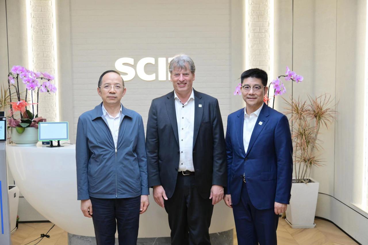 From left to right are Hou Jinhua, member of the Party Leadership Group and Deputy Director of the Shanghai Chemical Industry Zone Management Committee, Han Peide, Chief Operating Officer of ROHM Group, and Ling Hongen, President of ROHM Asia