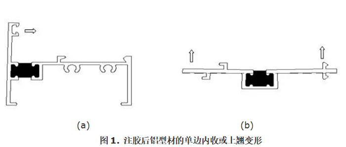 With the requirements of the global low-carbon development situation, the market demand for heat-insulating aluminum profiles is also constantly increasing. expand. As a mature product of thermal insulation and energy-saving building profiles, glue-injected aluminum profiles have gradually become one of the mainstream products in the thermal insulation aluminum profile market due to their high production efficiency and low cost. However, in the industrial production process of the enterprise, if the extrusion production process is produced according to conventional profile control dimensions, the aluminum profiles after injection, especially the casement window series aluminum profiles, are prone to unilateral deformation or upturned deformation in batches. Scrap, as shown in Figure 1.