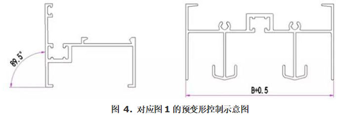 This method is to reserve the deformation amount of the closing mouth after glue injection. When designing the mold and extrusion production, consider the deformation amount in the direction of the glue injection port in advance, as shown in the figure4shown. The amount of pre-deformation during inspection should be controlled according to the different structures of the profile section. The amount of deformation can be reasonably controlled by measuring the angle or opening size.