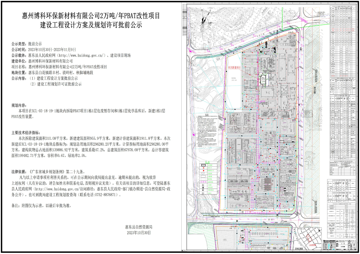 On October 30, 2023, Yuxin Co., Ltd. announced the pre-approval of the construction engineering design plan and planning permit for the 20,000 tons/year PBAT modification project of its holding subsidiary Huizhou Boke Environmental New Materials Co., Ltd.