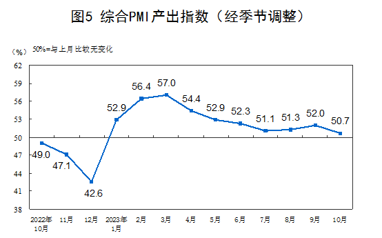 In October, the comprehensive PMI output index was 50.7%, a decrease of 1.3 percentage points from the previous month, indicating that the production and operation activities of my country’s enterprises are generally expanding, but the expansion rate is slowing down.