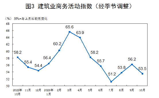 Looking at different industries, the business activity index of the construction industry was 53.5%, a decrease of 2.7 percentage points from the previous month; the business activity index of the service industry was 50.1%, a decrease of 0.8 percentage points from the previous month. From an industry perspective, the business activity index of industries such as railway transportation, air transportation, postal service, telecommunications, radio and television, and satellite transmission services is in the high-prosperity range above 60.0%; the business activity index of industries such as capital market services and real estate is below the critical point.
