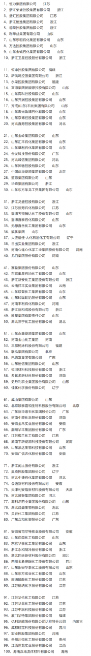 Shandong, Zhejiang and Jiangsu provinces account for nearly 60% of the companies on the list. Among them, Shandong, the largest province in the chemical industry, shows its absolute strength, with 35 companies on the list; Zhejiang has 13 companies on the list, ranking second; and Jiangsu has 10 companies on the list.