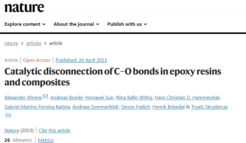 Landfilling of wind turbine blades has been banned in several European countries due to its inefficiency and unsustainability, and more are expected to follow. Therefore, there is an urgent need for feasible recycling strategies for epoxy resins and their composites.
