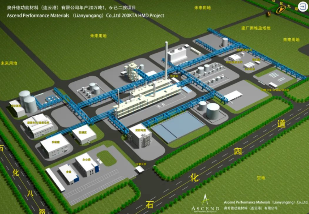 The “200,000 tons/year hexamethylenediamine project” is Ascend’s first chemical production base outside the United States, and it is also the company’s largest investment outside the United States to date. A nylon resin industrial chain will be built in Xuwei New District to further extend the industrial chain of Lianyungang Petrochemical Industrial Base.