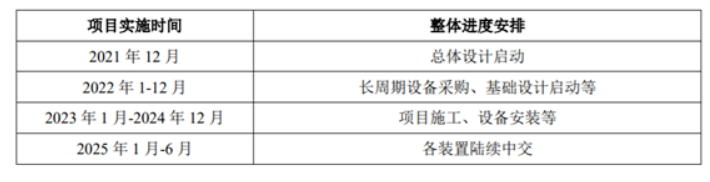 The construction period of the project is about 3 years. The project implementation time is as follows: