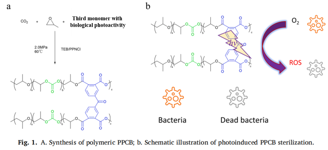 In order to comprehensively improve the high UV transmittance of traditional PPC materials and the presence of carbonyl groups in their chain segments, they are prone to rapid aging and degradation under UV irradiation, resulting in natural defects such as short material life. Professor Wang Wenzhen’s team from the School of Chemistry and Chemical Engineering of Xi’an Petroleum University took the idea of ternary copolymerization modified PPC and introduced the biophotoactive third monomer into the alternating copolymerization reaction of CO2 and epoxide to chemically conduct CO2-based polycarbonate. modified. Modified CO2-based polycarbonate (PPCB) has strong resistance to ultraviolet aging. Under ultraviolet irradiation, it can generate reactive oxygen species that can act on pathogens through electronic transition, prompting the pathogens to produce oxidative stress, leading to their inactivation. or die, thus imparting antibacterial properties to the material. The polymer material showed extremely low cytotoxicity to mouse fibroblast L929 cells in the concentration range of 0-50 μM, indicating that PPCB has good cytocompatibility and a high concentration safety threshold. This research work can effectively prevent pathogens from spreading infections and reduce dependence on antibiotics, showing hope for the transition to a sustainable and circular carbon economy and great application potential to combat the growing threat of viral infections and protect public health. This work is also the first time that degradable CO2-based PPC materials have been used in the fields of efficient antibacterial, anti-ultraviolet, and anti-aging research, expanding the application scope of CO2-based polycarbonate polymer materials. This work is one of the latest developments in the team’s recent research on the precise design and controllable synthesis of carbon dioxide-based polycarbonate.
