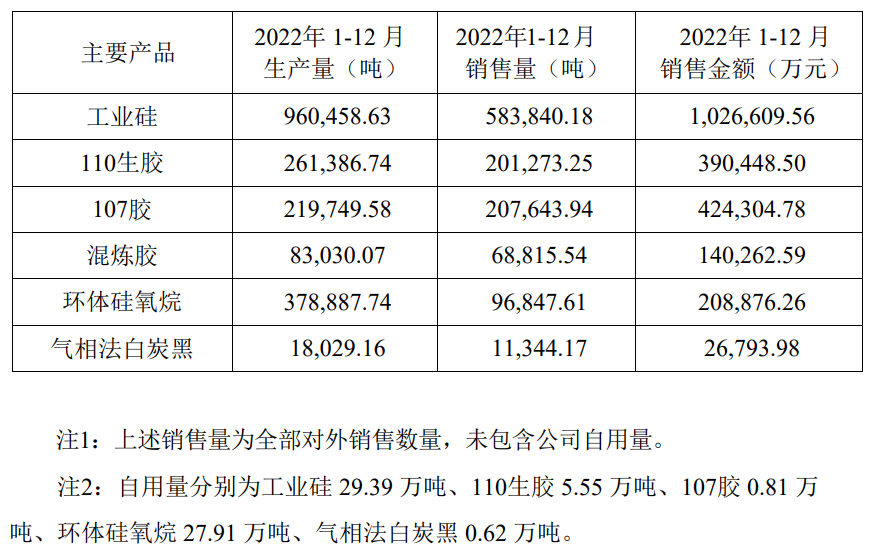 Industrial silicon sales revenue for the year was 10.285 billion yuan, accounting for 43.71% of total revenue, an increase of 15.43% over the previous year. The main reason was that new production capacity was put into production and sales increased.