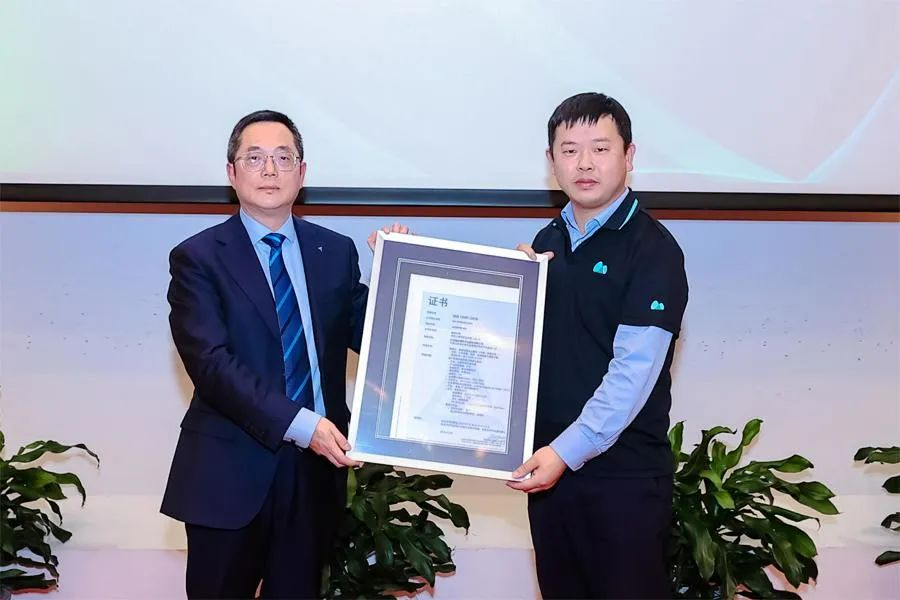 ▲ Greencycle Chairman Qin Yufei wore a quick-drying T-shirt to receive the low-carbon certificate