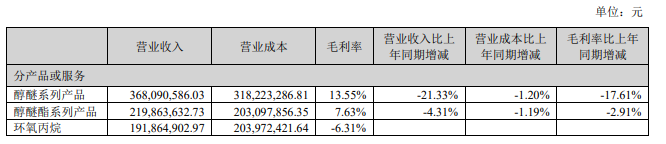 As the main product of Yida, the sales volume of alcohol ether and alcohol ether ester products in the first half of the year increased by 15.13% year-on-year, and the market share increased. However, affected by market competition and downstream demand, the average sales price of alcohol ether and alcohol ether ester products Compared with the same period last year, it decreased by 26.80%, resulting in a year-on-year decrease of 13.04% in sales gross profit margin.