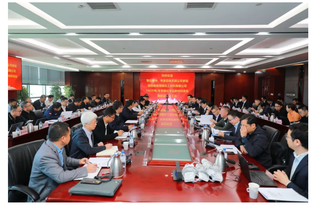 From October 26th to 27th, the basic design meeting for the 1 million tons/year high-end chemicals new material project of Shaanxi Yuneng Fine Chemical Materials Co., Ltd. was successfully held in Tianjin. Relevant leaders from the Yulin High-end Energy and Chemical Base Construction Headquarters Office and the Yushen Industrial Park Management Committee, Wen Yaoshun, member of the Party Committee and Deputy General Manager of Yuneng Group, Bi Yajun, executive director and general manager of Yuneng Fine Chemicals, and Ren Guoyu, chief engineer, Zhao Minwei, deputy general manager of Tianchen Company, and Lin Binbin, chief engineer, attended the meeting.