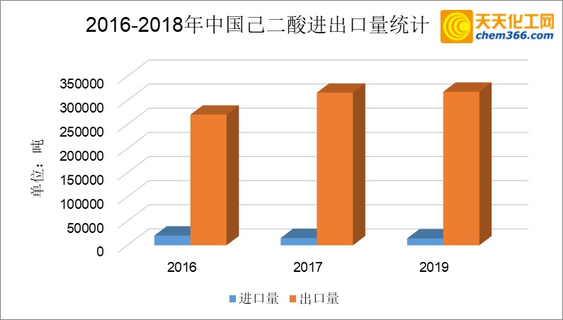 According to the data of Tiantian Chemical Network, the import volume of adipic acid has shown a decreasing trend in the past three years. Among them, the total import volume of adipic acid in 2018 was about 14,000 tons, a year-on-year decrease of 4.29%. It is estimated that in the next five years, the decline in China’s adipic acid imports will remain around 5%. In 2018, the export volume of adipic acid was about 320,000 tons, a year-on-year increase of 0.6%.
