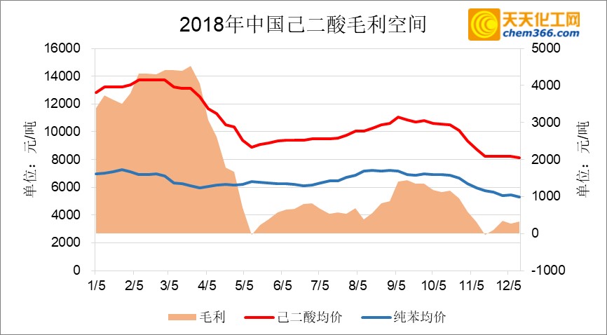 From the perspective of the market price of adipic acid in 2018, the fluctuation range is relatively large, and the difference between the peak and the valley of the price can reach 5,500 yuan/ton; Due to the tight supply of domestic manufacturers and the low inventory of the holders; and in the fourth quarter, the profit of the adipic acid market was severely compressed, which was mainly limited by the downstream demand.