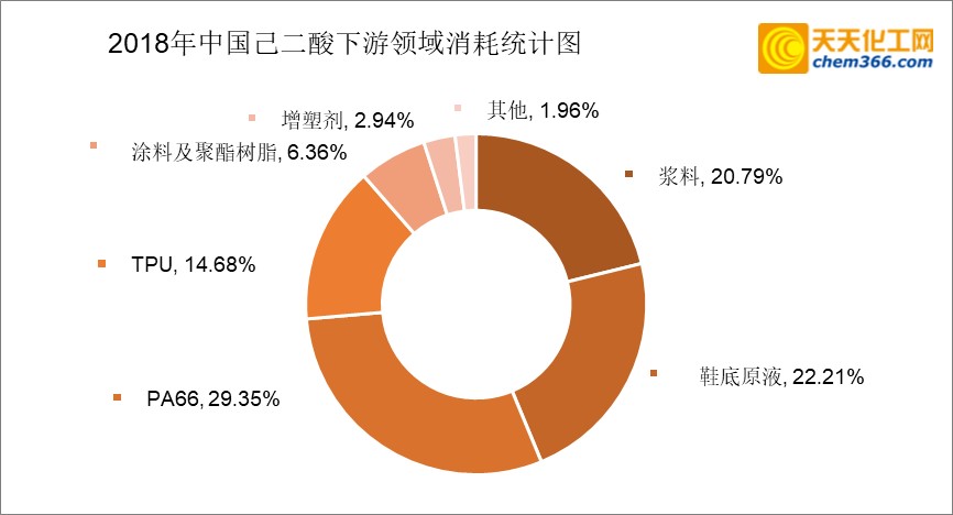 In the Chinese market, sole stock solution, slurry and PA66 industries are the main consumption areas of AA. In 2018, the AA consumption accounts for AA consumption Nearly 70%; and as the most important nylon field in the world, the consumption of AA has increased compared with previous years. The expansion of production capacity and the release of new production capacity have led to an increase in the consumption of AA for nylon. The consumption of adipic acid in the domestic nylon industry accounts for about 29.31%. .