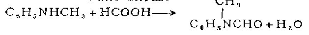 2. Install a water trap with a piston on the 2-liter round-bottomed flask, and connect a reflux condenser to the water trap. The bottle contains 321 grams (3 moles) of N-toluidine, 300 grams of formic acid (85-90%) and 200 ml of benzene. Heat to reflux until no more water separates (collect 140-150 ml). Transfer the residue into a Kirschner flask, distill under reduced pressure, and collect the 114-121/8mm fraction.
