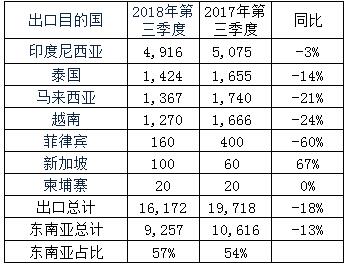 Two. Japan’s export of TDI to Southeast Asia in the third quarter of 2018