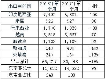 One. The situation of China’s export of TDI to Southeast Asia in the third quarter of 2018