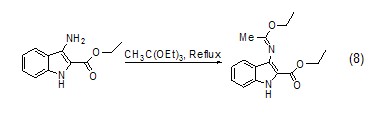 Formation of C-X bond Triethyl orthoacetate can also react with heteroatom groups such as amino groups to form C-N bonds or C=N double bonds (Formula 8)[9 ].