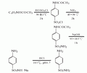 Raw material consumption quota: acetanilide (99%) 1032kg/t, chlorosulfonic acid (96%) 4521kg/t, liquid ammonia (99.8%) 535kg/t,