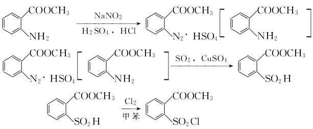 2. Preparation of formyl o-sulfonylbenzoate through heavy amination, substitution and chlorination Stir the methyl anthranilate and sodium nitrite solutions evenly, then add them dropwise to the mixed acid in the diazo pot for reaction. The starting temperature of the dripping is about 10°C, the reaction temperature does not exceed 25°C, and the end point of the reaction is the potassium iodide starch solution. It is light green. Cool the diazo reaction solution to 10°C, add copper sulfate to dissolve it, and then pass in SO2 (approximately 1 hour) to precipitate methyl o-sulfenic acid benzoate. Use H acid test paper to test the end point of the substitution and it should be colorless. Add toluene. , vent chlorine gas to 2% at 30-35°C. The benzidine ethylamine test paper test shows dark dark green as the end point of chlorination. Let it stand and separate the layers. Take the organic layer to obtain a toluene solution of methyl o-sulfonyl chloride benzoate. 3. Cyclization and acid precipitation to obtain insoluble saccharin  Mix water and methyl o-sulfonyl chloride benzoate toluene Add the solution to the reaction pot, cool to 10°C, add ammonium hydroxide solution and stir, the temperature reaches a maximum of 70°C, and test the endpoint after the pH value is above 9 for 15 minutes (2% benzidine pyrazole test paper, if it does not immediately show yellow, the endpoint is the endpoint). Take the layered ammonium salt solution and add toluene and 30% hydrochloric acid to make the pH=1 or less. After acid precipitation, cool to 20°C, separate the acid water layer and the toluene layer and wash with water to remove the ammonium chloride to obtain insoluble saccharin toluene colloid.
