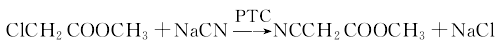 3.Synthesis of cyanoethanol methyl ester In a 250mL three-necked bottle equipped with an electric stirrer, a thermometer and a dropping funnel, add 55g sodium cyanide, 55mL methanol and a small amount of phase transfer catalyst quaternary ammonium salt, stir and heat When the temperature reaches 55°C, 100g of homemade methyl chloroacetate was added dropwise, and the dripping was completed in 15 minutes. The reaction was kept for 3 hours. After the reaction solution was filtered, the solvent methanol was first distilled under normal pressure, and then distilled under reduced pressure. Collect 88~90°C/2.666 The fraction of kPa is the product methyl cyanoacetate.