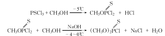 1) It is obtained by the condensation of O,O-dimethylphosphorothioate chloride and 4-nitro-m-cresol ([2581-34-2]) under alkaline conditions. Add toluene to the condensation reaction pot, add 4-nitro-m-cresol, sodium carbonate and cuprous chloride under stirring, add O,O-dimethylphosphorothioate chloride at 95-97°C, and react above 90°C 3 hours, then filter, take the toluene layer and wash it with sodium hydroxide solution and water in sequence. After distilling under reduced pressure to recover the toluene, fenitrothionine crude oil is obtained, with a content of 90%. When using the molar ratio of 4-pin-m-cresol:O,O-dimethylthiophosphoryl chloride:sodium carbonate=1:1.1:1, the amount of toluene used is about 3 times that of 4-nitro-m-cresol (weight ), when cuprous chloride is about 2% (weight) of 4-nitro-m-cresol, the yield of fenitrothion is over 95%. The obtained crude oil has an effective ingredient content of not less than 93.0% for high-quality products and ≥85.0% for first-class products. Raw material consumption quota: m-cresol 550kg/t, nitric acid (100%) 860kg/t, phosphorus trichloride (100%) 1240kg/ t, methanol 600kg/t.